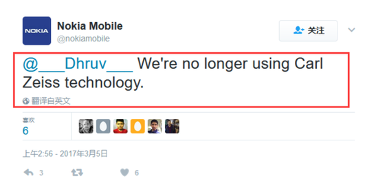 很多诺基亚的粉丝希望回归后的诺基亚新机能够再次采用卡尔蔡司镜头,但是现在看来粉丝们可能要失望了。近期,诺基亚手机官方在推特上表示,已经不再使用Carl Zeiss镜头。与此同时,官方称今年的新品发布才刚开始,后面还有很多重磅产品敬请期待。