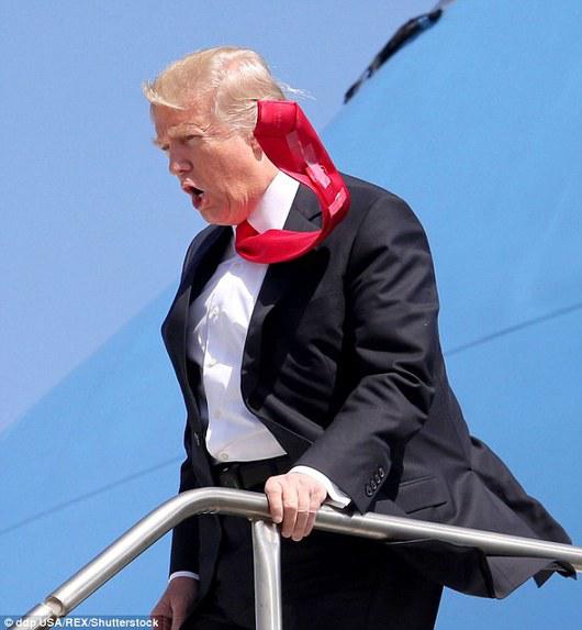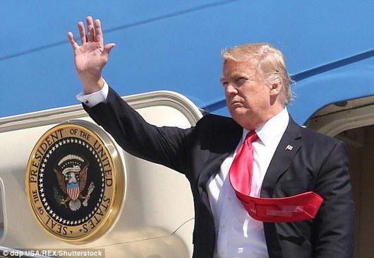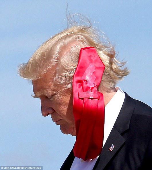 去年12月,他赢得大选后,被拍到与彭斯一起走下飞机。狂风大作,彭斯把领带扣在西装里,特朗普则任红领带随风狂舞,当然还有领带背后的胶带。