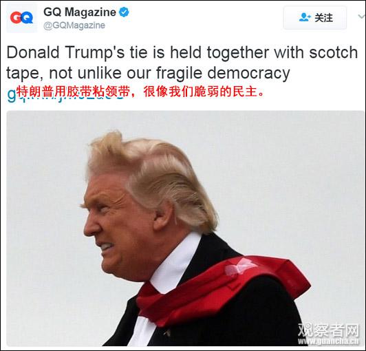 因为多次使用胶带并且领带太长,特朗普常被时尚界和美国网友猛批。