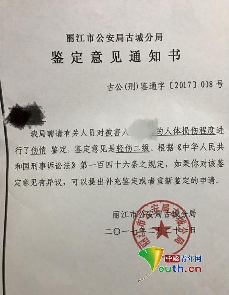 在丽江市公安局古城分局出具的伤情鉴定中表示,“如果对该鉴定意见有异议,可以提出补充鉴定或者重新鉴定的申请。”中国青年网记者向琳哒询问是否有相关考虑时,琳哒表示这个问题目前还在考虑。