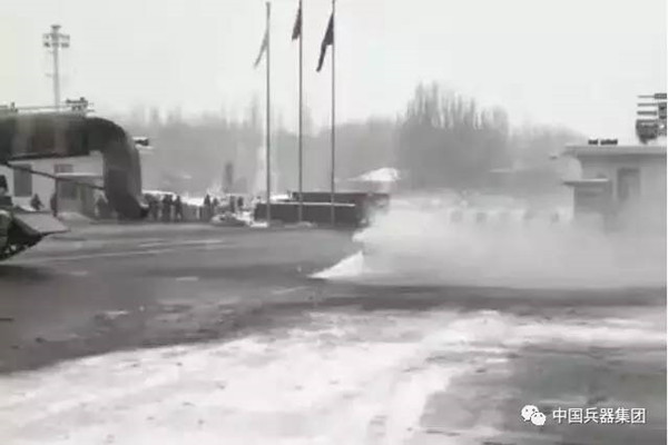 天寒地冻,大雪纷飞,道路积雪严重,野外试车受到影响怎么办?“涡喷吹雪车”是一机集团依托军工技术优势,继“履带式消防坦克”、“可移动式防爆岗舱”、“道路抢通车”成功研发销售后,推出的又一军民深度融合产品。产品通过在坦克底盘上加装喷气式飞机的发动机,依靠其产生的高温、高速尾气流,对地面积雪进行远距离、高强度地吹散,同时还具有推障,防护性能高,越野性能好,功率强劲,对恶劣环境适应性强等特点。