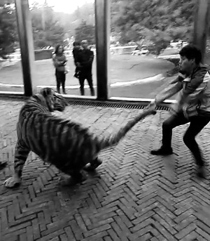 15日下午, 记者拨通了该野生动物园办公室的电话,一名工作人员承认当事人是该园的一名驯兽师,但认为“那并不是挑逗”。