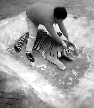 “与老虎待在一起很久,并不担心老虎会攻击或伤害,”他的语气中透露着自信,在聊天中,他似乎并未意识到自己的行为存在虐待动物的嫌疑,他表示动物园也没有反对这种行为,还表示类似的视频每天都会拍。