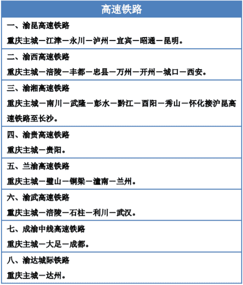 据了解,8条高速铁路包括规划建设重庆至成都、兰州、西安、郑州、武汉、长沙、贵阳和昆明等8个方向,时速在250公里及以上的高速铁路通道。届时,重庆将形成共计10条2032公里“米”字型高速铁路网。