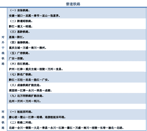 与此同时,根据国家中长期铁路网规划及重庆经济发展需求,还将规划新增普速铁路9条,里程1610公里,到2030年,重庆全市普速铁路总规模达到3773公里。