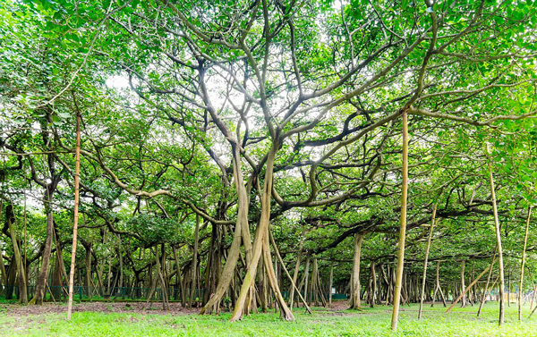 这棵位于印度豪拉植物园(Acharya Jagadish Chandra Bose Botanical Garden)的榕树有250年的历史,占地约1.4万平方米,直径达411米,有3600个气根。该植物园围绕这些气根修建了道路,以便游客近距离欣赏。人们将其称为“大榕树”。