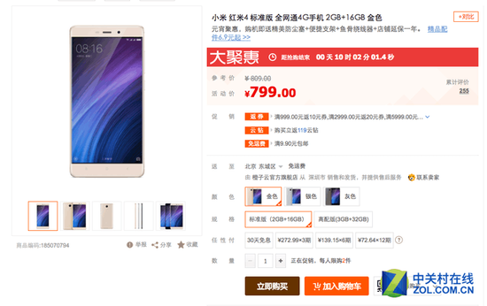 由于小米新价格执行的比较突然,我们看到部分电商平台的第三方卖家反应略显迟钝,仍然有部分电商能找到原先加价100元现价799元的红米4,也就是说如果你没有在涨价前抢到红米4,趁第三方电商没有反应过来,可以现货入手了。