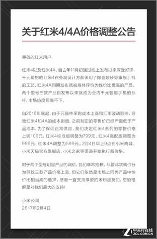 红米4/4A宣布涨价100元 官网依然买不到