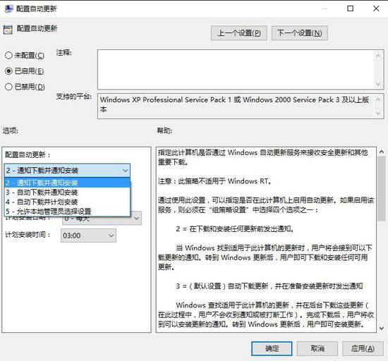 3,双击右侧的“配置自动更新”,选择已启用,在下方下拉框选择“通知下载并通知安装”