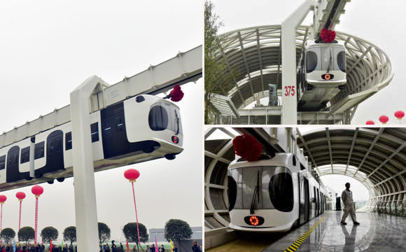 世界首条新能源“空铁”成都试跑: 悬挂空中飞驰