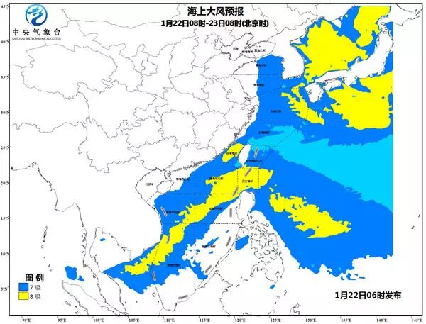 另外,受冷空气影响,我国近海仍有大风。预计,22日白天至夜间,受较强冷空气影响,东海东北部海域将有7~8级、阵风9级的西北风,台湾海峡、巴士海峡、南海东北部和中部海域、南海西南部海域将有7~8级、阵风9~10级的东北风。气象专家提醒受大风影响海域航行、作业的船舶,注意航行安全。