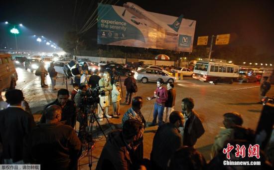 当地时间12月7日下午,巴基斯坦国际航空公司一架载有47人客机因撞山坠毁,失事原因或为引擎失灵。据悉,该客机于当地时间7日下午3时30分从奇特拉尔出发,原计划下午4时40分到达首都伊斯兰堡。图为当地时间12月7日晚间,巴基斯坦媒体记者和民众聚集在位于首都的贝娜齐尔·布托国际机场(Benazir Bhutto)国际机场外面等待结果。