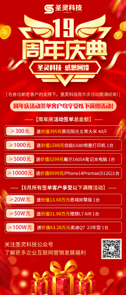 在各位新老客户的支持下,圣灵科技8月周年庆活动圆满结束!